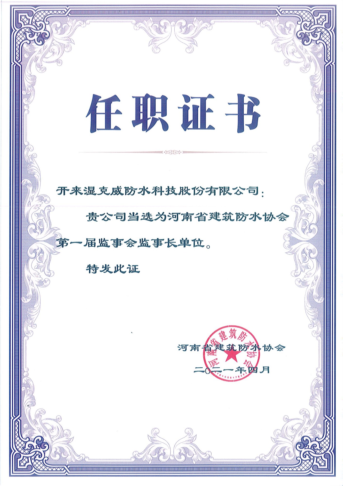 河南防水協(xié)會(huì)監(jiān)事長(zhǎng)單位