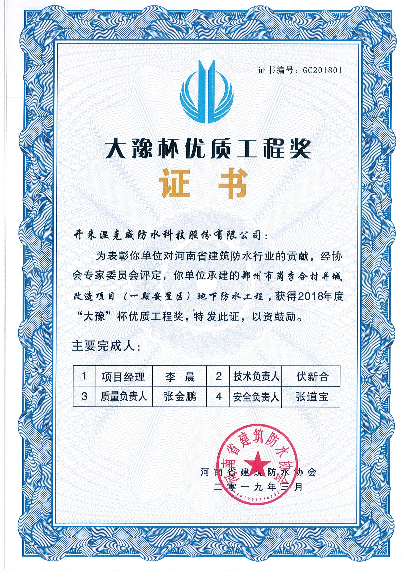 大豫杯優(yōu)質(zhì)工程獎(jiǎng)