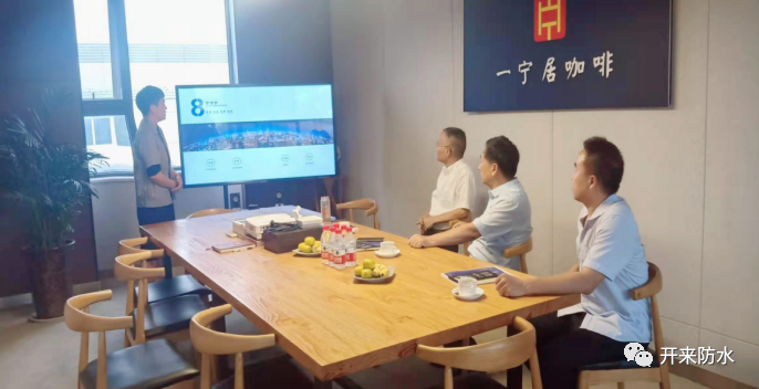 王洋云經(jīng)理匯報了開來濕克威企業(yè)文化、開來、濕克威、樂活、一寧四大品牌、16大特色產(chǎn)品及國內(nèi)外典型工程;開來濕克威具有一級防水保溫防腐資質(zhì),從1993年在上海創(chuàng)辦以來累計施工項目30000多個,專利29項,參與編制修訂國家、省級標(biāo)準(zhǔn)30多項,是一家集防水材料生產(chǎn)、銷售、施工及技術(shù)服務(wù)的專業(yè)防水系統(tǒng)提供商。