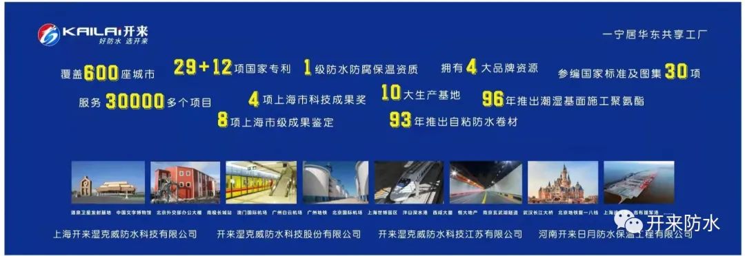 旗下擁有“開來”、“SECOV(濕克威)”、“樂活”、一寧”4大品牌,國家級防水防腐保溫工程壹級資質,網絡覆蓋中國600座城市,服務過30000多個項目,42項國家專利,參與國家標準及圖集30項,8項上海市級成果鑒定,4項上海市科技成果獎,我們以呵護人類建筑安全為己任,通過“一個電話所有事情我來辦”和“360°品控,全程品質可追溯”來踐行防水全程無憂的承諾。是一家集防水卷材、防水涂料、家裝防水材料、堵漏密封材料、瀝青瓦、道橋防水材料、施工設備的研制、生產、銷售、施工、技術咨詢服務于一體的,并具有自營進出口權的ARMOR(鎧甲)防水系統提供商。