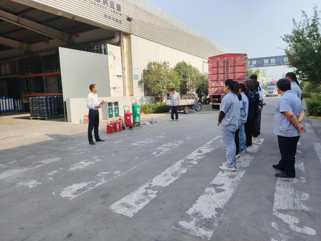 演練現場,開來濕克威防水行政總經理馮治銘和生產部部長倪貴彬通過實物展示和現場講解,向員工介紹了干粉滅火器、二氧化碳滅火器、泡沫滅火器等不同類型滅火器的特點和使用技巧。員工們認真聽講,對于不同火災類型應使用的滅火器有了更加清晰的認識。