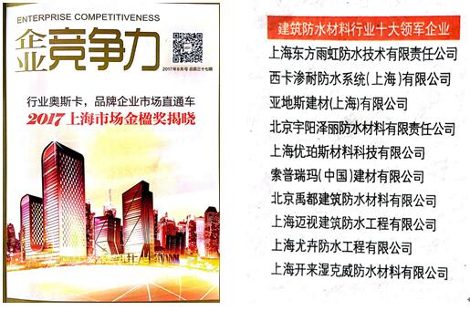 本屆金楹獎(jiǎng)活動(dòng)中,以綠色環(huán)保、呵護(hù)人類建筑安全為己任的生態(tài)防水創(chuàng)領(lǐng)者 — 上海開(kāi)來(lái)濕克威防水材料有限公司,榮獲上海市建筑防水材料行業(yè)十大領(lǐng)軍企業(yè)金楹獎(jiǎng)。