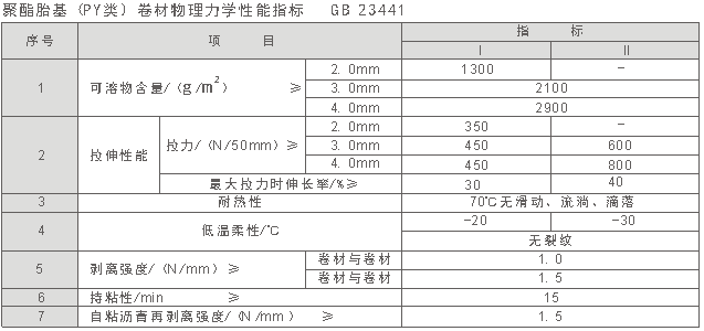 B 產(chǎn)品按性能分為Ⅰ型和Ⅱ型,卷材厚度為2.0mm的PY類只有Ⅰ型。